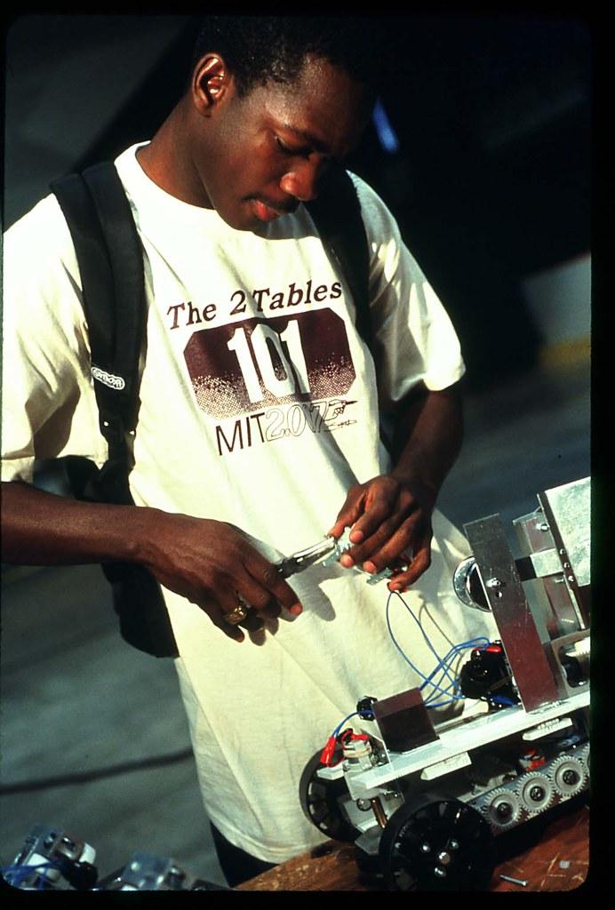 Student during the Dept. of Mechanical Engineering's 33rd annual Design 2.007 contest "Two Tables," Johnson Athletic Center, May 2003.
