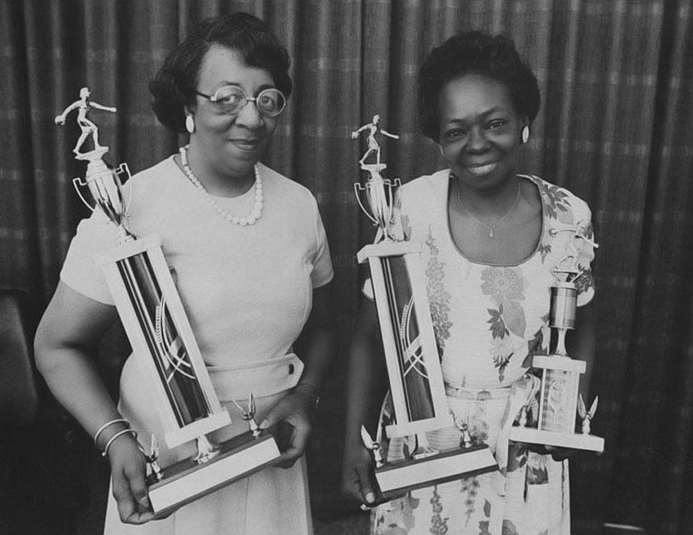 Staff bowling champs, 1974 Courtesy MIT MuseumFrom left: MIT staff bowling champs Marguerite Pinkston and Frances Fisher, May 1974 Timeline: 1970s Career: Community Object: Image Collection: Athletics, Honors, Integration and Differentiation 1969-1994, Staff, Women